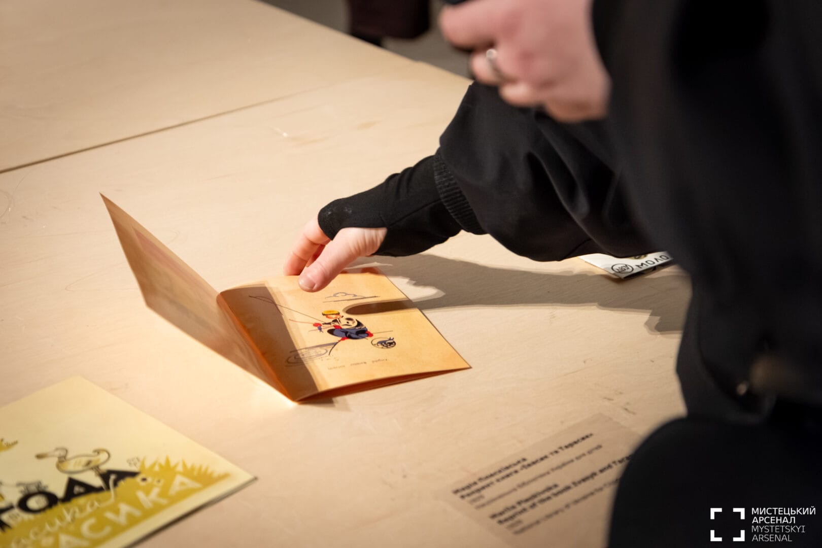 The exhibition is organised around four thematic sections: the art of the book cover, schools of Ukrainian graphic art, children’s illustration, and illustration beyond the book. One of its central installations is Heorhii Narbut’s alphabet – an iconic work of early twentieth-century Ukrainian graphic art that contemporary illustrators have continued through their own interpretations, enriching it with present-day imagery ranging from war and bomb shelters to ironic scenes of everyday life. The exhibition includes both original works and digital reprints.